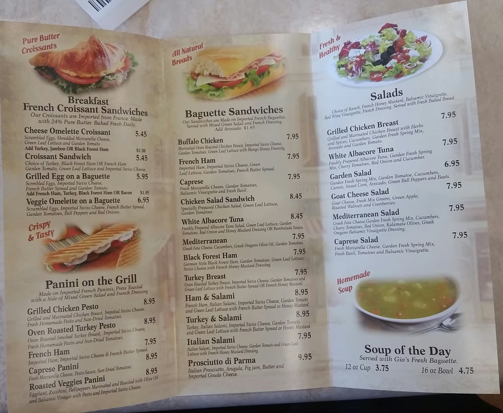 Welcome to Gio’s Bakery & Café, a delightful haven nestled in Montrose, CA, where gourmet flavors meet cozy charm. Our vibrant menu is a celebration of artisanal baking and fresh, locally sourced ingredients.